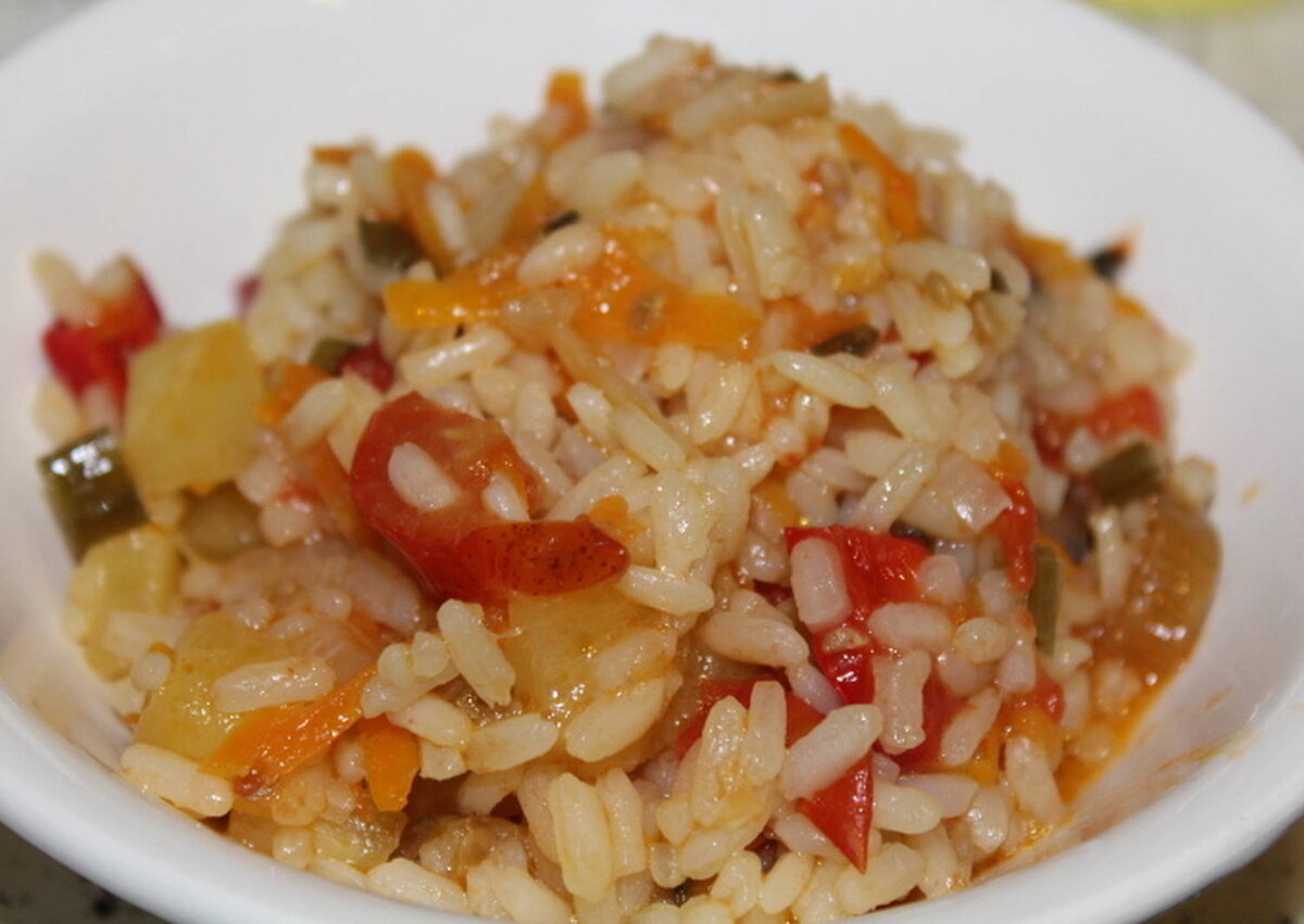 Ингредиенты: Рис круглозерный - 1 стакан Вода - 3/4 стакана Подсолнечное масло - 50 мл Морковь - 30 г Стебель сельдерея - 50 г Лук репчатый - 30 г Соль - 10 г Время приготовления: 20 минут Мощность:800 Вт Приготовление: 1. Рис хорошо промыть, пока вода не станет прозрачной 2. Нарезать овощи мелким кубиком 3. Поместить овощи и масло в кастрюлю СВЧ печи - готовить 2 минуты, мощность 800 Вт 4. Добавить к овощам промытый рис и воду 5. Накрыть крышкой - готовить 10 минут, мощность 800 Вт 6. Достать рис из микроволновки, посолить и перемешать 7. Снова поместить кастрюлю в СВЧ печь - готовить 2-3 минуты, мощность 600 Вт Приятного аппетита! Приобрети кастрюлю для СВЧ можно тут