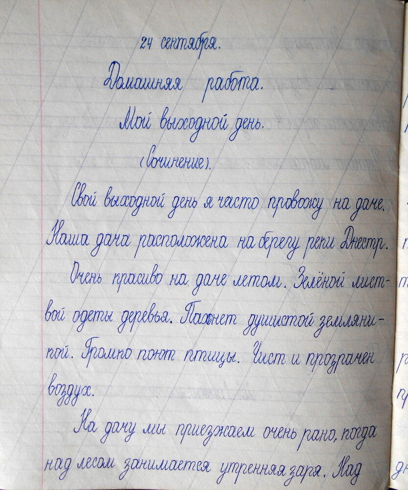 Это моё самое ностальгическое сочинение, написанное в третьем классе школы-гимназии №14 города Каменец-Подольского. Я рада, что успела получить хоть самую малую долю по-настоящему качественного образования. Очень повезло с учителями младших классов - Еленой Евгеньевной и Раисой Васильевной. Я им благодарна за увлекательные уроки и неоценимые базовые знания, за уважение к индивидуальности учеников и помощь в раскрытии способностей. Вот меня, например, никто не стал насильно переучивать из "левши" в "правшу", ломая психику - за это особая благодарность! Спустя несколько лет Русский язык полностью исчез из школьной программы. Считаю это трагедией, потому что вместе с ним исчезло что-то ещё очень важное, доброе, светлое... В школах начали забывать о самых ценных Человеческих качествах, заполняя образовавшуюся пустоту искажённой историей, бессмысленной враждой и сомнительными идеями о национальном украинском превосходстве. Совпадение или закономерность? #русский язык #школа #третий к