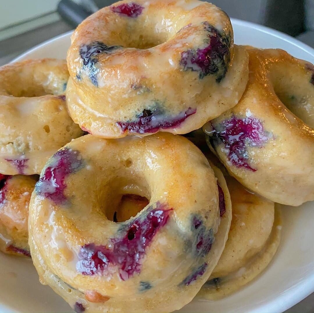 💜 ЧЕРНИЧНЫЕ ПОНЧИКИ ЗА 30 МИНУТ 🍰 ⠀ Нежные пончики, которые сведут вас с ума! Самые простые ингредиенты и польза ягод.👍🏻 ⠀ Сложность⭐️⭐️ ⏰ 30 минут ⠀ #veg_десерт #veg_выпечка ⠀ ✅ Ингредиенты: ⠀ Тесто: ▪️ 2 чашки* муки ▪️ 1/4 чашки* растопленного веганского масла (можно использовать кокосовое) ▪️ 1 чашка* миндального молока (или другого растительного) ▪️ 1 чашка* сахара ▪️ 1 ч.л. пищевой соды ▪️ 1,5 ч.л. разрыхлителя ▪️ 1 ч.л. ванили ▪️ 1/2 ч.л. корицы ▪️ 1 чашка* свежей черники ⠀ Глазурь: ▪️ 1/2 чашки* сахарной пудры ▪️ 1-1,5 ст.л. миндального молока ⠀ *1 чашка = 240 мл ⠀ 👩🏻🍳 Как готовить: ▶️ Разогреть духовку до 180 градусов. ▶️ Смешать растопленное масло, миндальное молоко, пищевую соду, разрыхлитель, сахар, ваниль, корицу до однородности. ▶️ Добавить муку и перемешать, пока тесто не станет однородным. ▶️ Добавить в тесто чернику и перелить тесто в форму для пончиков (если такой нет, можно использовать форму для кексов). ▶️ Выпекать около 20 минут. ▶️ Смешать все ингредиенты