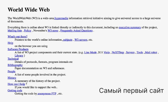 Историю веб-дизайна принято разбивать на временные этапы 1991-1993 Первый сайт на просторах интернета появился 6 августа 1991 года. Однако, кроме ссылок и текста на этом на сайта больше ничего не было. О дизайне впервые заговорили в 1993 году, когда появился браузер Mosaic, поддерживающий изображения. 1994-1996 С 1994 года в интернете начали набирать популярность цветные фоны: пестрые, градиентные, кислотные, яркие. Сайты были похожи на праздник. Ближе к 1996 году на сайтах начали появляться GIF-изображения. 1997-1998 В этот период сайты начинают приобретать человеческий вид (картинка): сайты строятся на макетах, появляется навигация и иконки. Также на сайтах можно было увидеть кучу рекламы с кричащими текстами. 1999-2003 В этот период фоны становятся более спокойными и больше не привлекают внимания, а в моду входят скругленные элементы и разного рода градиенты. Сайты становятся более удобными и функциональными. 2004-2006 Наступает эпоха Web 2.0. Теперь на сайтах удобно читать тек