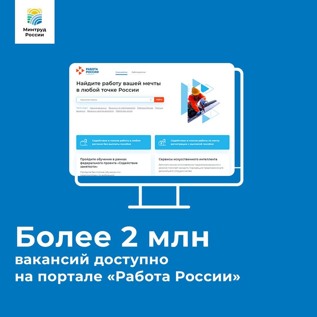 На портале «Работа России» уже более 2 миллионов вакансий!