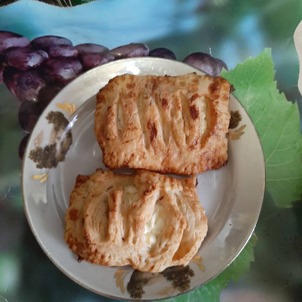 #непп За очень доступный и быстрый рецепт благодарю автора @Spanduninunik Ингредиенты: Тесто слоёное, Масло для противня, Яйцо, Творог, ст л Сахар Способ приготовления: Из теста сформировать сочни прямоугольные. Яйцо взбить с сахаром, смешать с творогом. Выложить на сочень и прикрыть другим, в котором заранее сделать надрезы. Оставшийся творог я выложила на круглый сочень оставшегося теста. Выпекать в духовке при 180° 25 мин. Вообще выпечка из слоеного теста, это всегда удачный и выручающий вариант. Приятного аппетита!!!