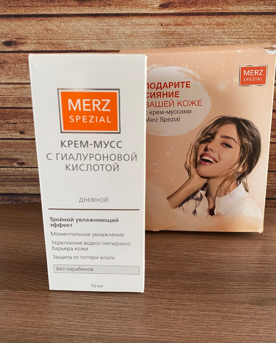 Всем привет! Весной и летом не хочется перегружать кожу тяжелыми питательными кремами. Поэтому в тёплое время года я предпочитаю использовать легкие увлажняющие кремы. Например, крем-мусс с гиалуроновой кислотой от Merz Special. Он не просто увлажняет кожу, но ещё и оказывает тройное действие и обладает невесомой текстурой. Но обо всем по порядку! Изначально крем находится в картонной коробочке со всей необходимой информацией. Состав, способ применения, описание и не только - это все можно почитать на коробочке и вкладыше. Где купить - на аптека.ру Мне очень понравился состав крем-Мусса. В нет нет парабенов, а главный компонент - гиалуроновая кислота. Именно она отвечает за увлажнённость кожи и удерживает влагу на ее поверхности. Но помимо гиалуронки, состав богат морским глюкозамином и бурыми морскими водорослями. В сочетании эти компоненты наполняют кожу влагой и стимулирую клеточный метаболизм. Сам же крем-мусс представлен в небольшом белом флакончике, объёмом 50 мл. На обратной