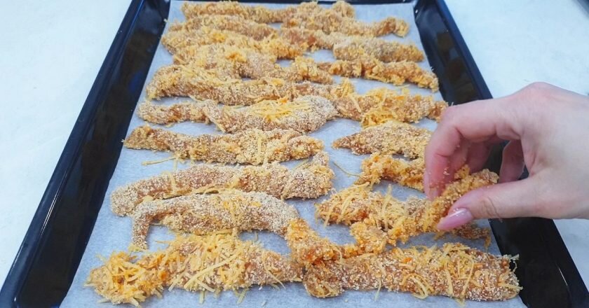 Закуска получается очень вкусная! А если вы хотите использовать это блюдо как горячее, дополните его салатом, кашей или макаронами. И не забудьте выбрать подходящий соус по своему вкусу! Как приготовить хрустящие куриные стрипсы в домашних условиях Вы можете использовать любые специи для приготовления куриных стрипсов в домашних условиях. Если не любите острые закуски, используйте меньше перца и паприки. Подойдут и обычные специи для курицы, если вам нравится их вкус. Однако будьте осторожны с солью: в некоторых приправах она уже содержится. Ингредиенты Куриная грудка - 2 шт. Соль - 1 ч. л. Чесночный порошок - 1 ч. л. Черный перец (молотый) - 0,5 ч. л. Паприка - 1 ч. л. Соевый соус - 1 ст. л. Подсолнечное масло - 1 ст. л. Панировочные сухари - 100 г Твердый сыр - 100 г Яйцо - 2 шт Приготовление 2. Добавьте соль, перец, чесночный порошок, 0,5 ч. л. паприки, соевый соус и подсолнечное масло. Перемешайте курицу, накройте ее пленкой и уберите на 1 час в холодильник. 3. Для приготовления п