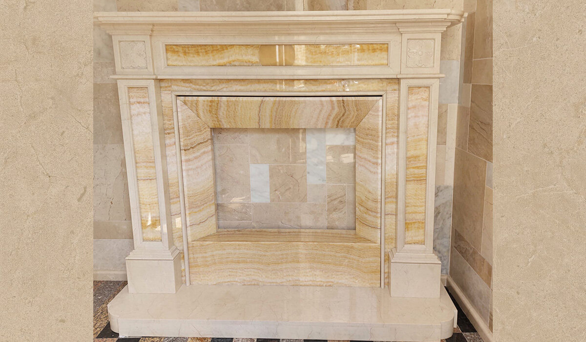 С давних времен камин считался сердцем дома, символом домашнего уюта и тепла, очагом и оберегом. Возле него традиционно проводят семейные посиделки, романтические вечера с любимыми, веселые вечеринки с друзьями. И в этом нет ничего удивительного! Собравшись у красивого мраморного камина, вы проникнитесь особой атмосферой, сможете полноценно расслабиться, хорошо провести время и получить настоящее эстетическое удовольствие. Наш камин изготовлен из испанского мрамора Крема Марфил, обладающего нежным молочным оттенком. Декоративные вставки, украшающие его поверхность, выполнены из иранского оникса Golden в светло-бежевых оттенках. Главной особенностью этого натурального камня является отличная светопропускная способность. Чтобы подчеркнуть этот факт, камин дополнен специальной подсветкой. Благодаря ей в темное время суток он исполняет роль световой картинки, декоративного предмета интерьера и стильного ночника, дающего теплый желтый цвет. Такой эффект понравится не только взрослым, но и д