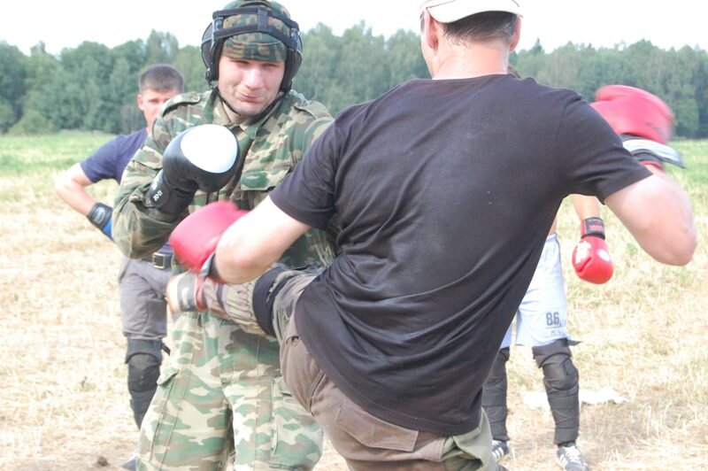 Следующая тренировка имела цель провести комплекс действий из ударов и бросков, в разных внешних условиях.