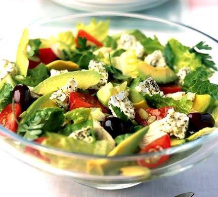Приготовление: огурец нарезаем кубиком, сливовидные помидоры или помидоры черри нарезаем крупными дольками. Авокадо чистим любым удобным способом и нарезаем кубиком, ¼ красной луковицы нарезаем тонкими полукольцами и маринуем в лимонном соке. 70 грамм фетаксы или брынзы нарезаем крупным кубком. Добавляем к остальным ингредиентам горсть оливок и лук. Заправляем салат оливковым маслом, солим и перчим по вкусу. Добавляем несколько листиков темьяна. Приятного аппетита!