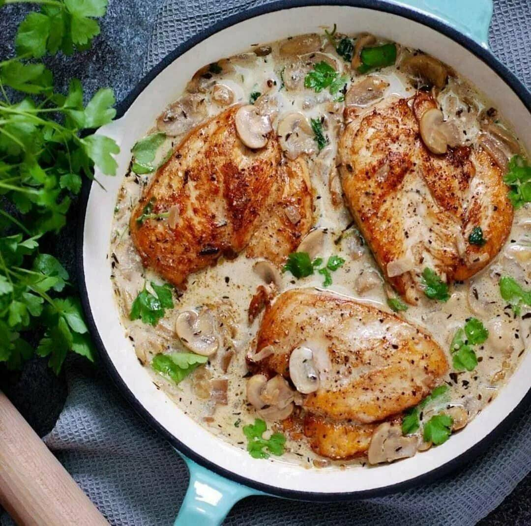 Ингредиенты: - 800 г куриного филе - 4-5 зубчиков чеснока - 10% сливки - растительное масло - специи для курицы - соль, перец Приготовление: 1. Мясо нарезать на небольшие кусочки, чеснок нарезать дольками. Курицу посыпать специями, посолить, поперчить. 2. Выложить курицу в форму, равномерно обсыпать порезанным чесноком. 3. Сливки залить на курицу и поставить все в духовку (200 градусов) на 45-50 минут. Приятного аппетита!