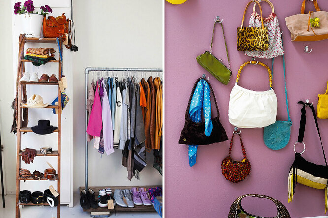 Мы знаем, как избавиться от проблем, которые чаще всего раздражают вас в собственном доме. С помощью этих простых советов можно справиться с неудобствами без особых хлопот. Шкаф переполнен, и вещи девать некуда Добавьте в гардероб дополнительную планку, сделав в шкафу второй ярус для вешалок. Кладовка превратилась в свалку. Что делать? Куда девать вещи, которые пока рано стирать? Хорошо смотрятся декоративные лестницы, к тому же они почти не занимают полезной площади комнаты. На них можно разместить вешалки с одеждой. Используйте навесные крючки, которые крепятся на межкомнатные двери. Для них даже дырки в стенах сверлить не придется. Можно подвесить крючки на дверь. Сразу будет, Куда девать еще не грязную одежду — очень удобен мобиль для одежды, а также открытые секции, напольные вешалки, вешалки-камердинеры и манекены. Их можно красиво вписать в интерьер, сделав дополнительным аксессуаром. Негде хранить сумки, а в шкафу на полках они теряют форму Везде торчат провода, это очень меш