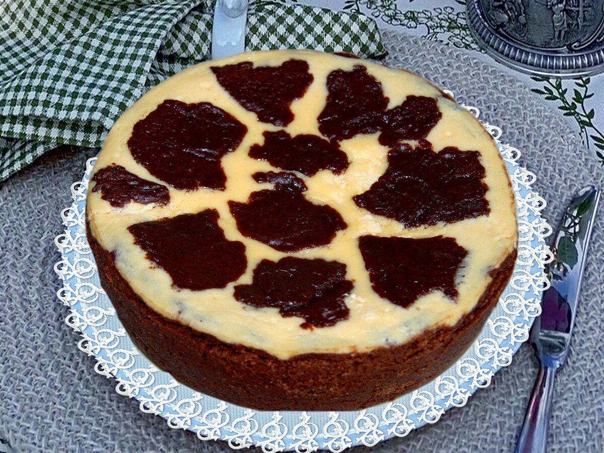 Самый известный рецепт творожного пирога в мультиварке, который я опубликовала 13 лет назад. Готовится просто, поэтому популярен до сих пор. Выпекала в мультиварке «Panasonic-18», учитывая особенности программы. Для современных моделей можно уменьшить время. Продукты Тесто: 200 г маргарина* 150 г сахара 1 яйцо 350 г муки 1 упаковка разрыхлителя (10 г) 50 г какао Начинка: 200 г маргарина* 150 г сахара 4 яйца 500 г творога 1 пак. ванильного сахара (8 г) 1,5 ст. л. крахмала *маргарин можно заменить сливочным маслом. Приготовление 1. Размягчённый маргарин взбить с сахаром. 2. Добавить остальные продукты и замесить тесто. 3. Форму смазать маргарином. Выложить тесто, оставив небольшой кусочек. 4. Сделать начинку: все продукты смешать одновременно. 5. Начинку вылить на тесто. 6. Из оставшегося кусочка теста сделать лепёшку и порвать на кусочки. 7. Кусочки теста положить сверху начинки в произвольном порядке. 8. Установить программу "Выпечка" на 65 мин (45 – 60 мин в других мультиварках). П