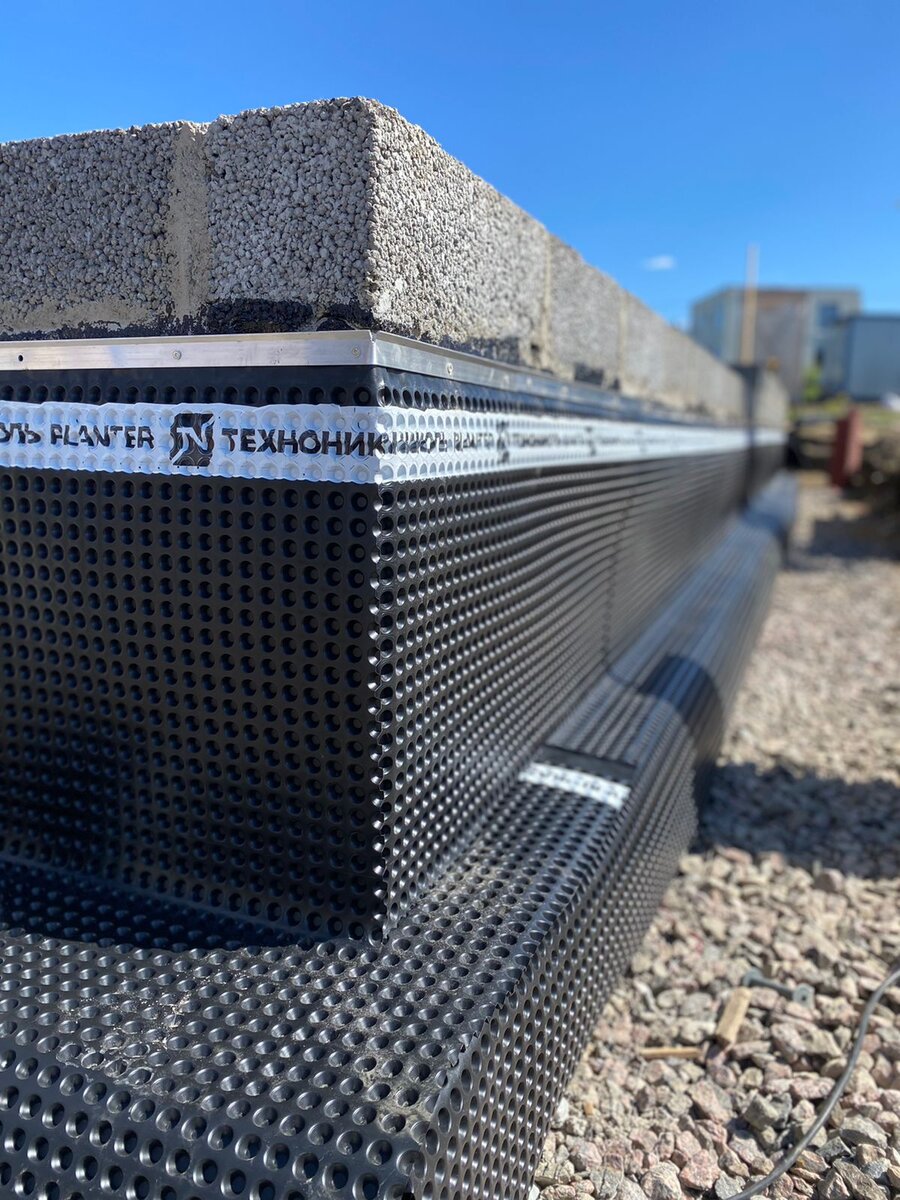 При необходимости, в случае большого объема обратной засыпки мы применяем дополнительно мембрану PLANTER для защиты гидроизоляции и снижения давления грунтовых вод с отводом в дренаж фундамента