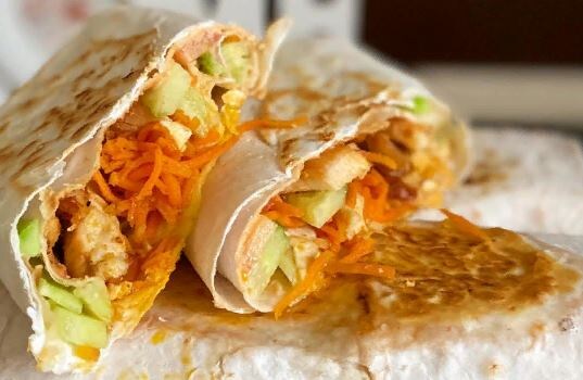 6. Обжариваем на гриле или на сковородке шаурму по 1-2 минуте с каждой стороны; больше обжаривать не рекомендую, 1-2 минуты достаточно, чтобы лаваш подрумянился, ведь продукты в лаваше уже готовы😉