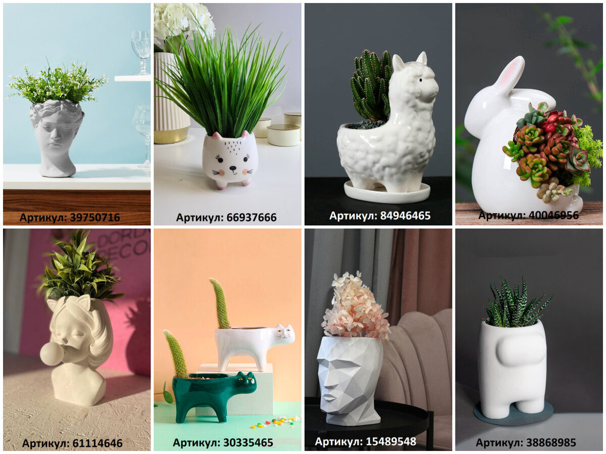 2. Артикул: 66937666 (ссылка). Декоративное кашпо горшок фигурка интерьерная. Элегантно и стильно смотрится в интерьере любого дома сада или офиса. Помимо функции вазы или кашпо для цветов данная статуэтка может быть использована как органайзер для канцелярских или make-up принадлежностей, конфетница, подсвечник.