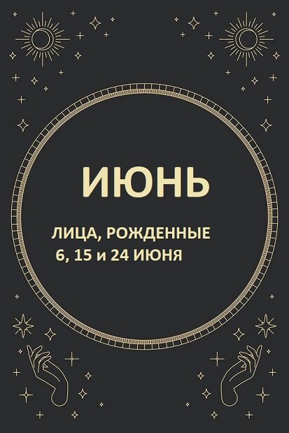 Если вы родились 6,15 и 24 июня, вы вправе ожидать от себя успехов и выдающихся достижений, однако у вас будет несколько фаталистический взгляд на жизнь и, вследствие этого, вас время от времени будут посещать мрачные предчувствия и приступы меланхолии.