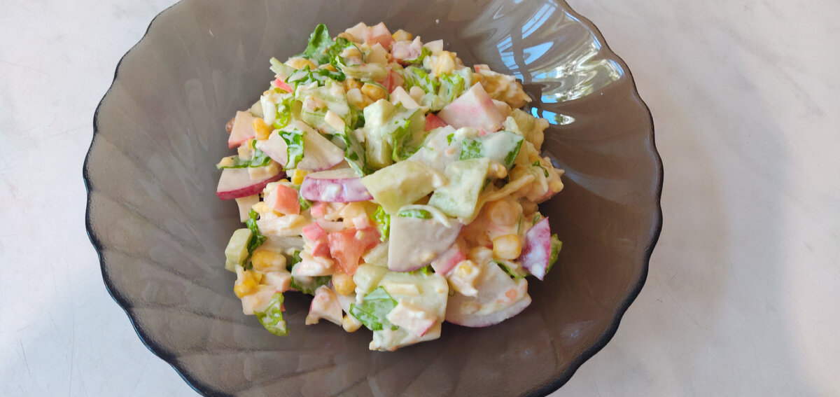 Салат с крабовыми палочками проще простого. Для праздника и диетического ужина