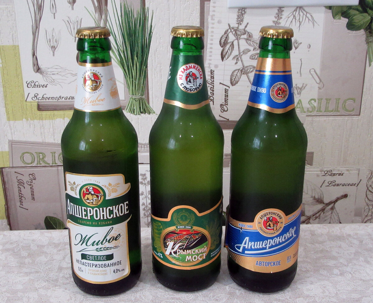 Славный город Хадыженск, что находится в Апшеронским районе Краснодарского края, славен своим "Хадыженским" пивом. Только вот в этом небольшом городе (всего 22000 населения) не один пивзавод. (А целых два!) Не так давно в ближайшую разливайку стали возить несколько сортов пива из Хадыженска (вроде 5). Один сорт я пил несколько пару-тройку недель назад, вместе с кучей другого пива. А вот на прошлой неделе я взял аж три бутылочки светлого пенного на вечер пятницы. Стоит отметить, что у "Крымского моста" пробка старого образца, у двух других сортов - уже новая пробка! Начать решил со старичка)) Крымский мост. ТТХ 11.0-4.0. Производитель ООО "ТПК КМВ". г. Хадыженск, Апшеронский район, Краснодарский край. Объем 0.5л. Пробка - брендированная, общая для всей продукции пивзавода. Пиво на исходе срока годности (а он 90 суток), и это к сожалению чувствуется. Цвет - темно-соломенный. Пенная шапка средних размеров, нестойкая. В аромате чуть солода. Во вкусе немного солода, признаки цветения - сорв