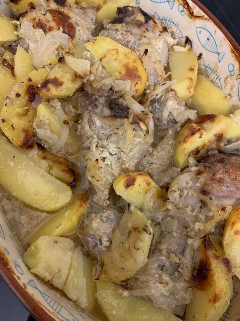 Продуктов минимум, но вкус изумительный! Ингредиенты: Курица голени, кефир, Приправа для курицы, соль, Картофель средний, Лук репчатый, Зелень любая Способ приготовления: Куриные голени промываем, обсушиваем, лук нарезаем полукольцами, соединяем с курицей. Сюда же добавляем картофель, нарезанный дольками. Готовим маринад и заливаем всё это, даём мариноваться 2 часа. Затем перекладываем в форму для запекания и ставим в разогретую духовку до 180 градусов примерно на час. При подаче можно посыпать зеленью, приятного аппетита!