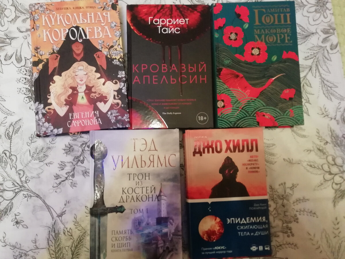 В это году было немало новых книг (по моим меркам 😉). И это не обязательно покупка, также подарки, обмены (в них я люблю участвовать😊). 1. Евгения Сафонова "Кукольная королева". Издательство: Эксмо. Три ипостаси есть у оборотней. Одна ловкая – для детства, одна крылатая – для юности, и ещё одна, самая сильная, – для поры защищать себя.Три личины есть у неё. Птица. Кошка. Королева, у которой нет и не будет короны: только ниточки, за которые удобно дёргать кукловодам. Две тайны есть у неё – и два проклятия, ибо за раскрытие каждой – смерть. И никто не спросит, хочет ли она приключений и дальних странствий, когда незнакомцы придут в её дом. Потому что кто-то давно решил это за неё. *** Вообще меня зацепила и обложка, и аннотация, а значит и книга должна зацепить! Есть продолжение! 2. Гарриет Тайс "Кровавый апельсин". Издательство: Рипол-классик. Заботливый муж, милая дочка, дорогой дом и блестящая карьера — у Элисон была идеальная жизнь. Теперь это всего лишь декорация, за которой