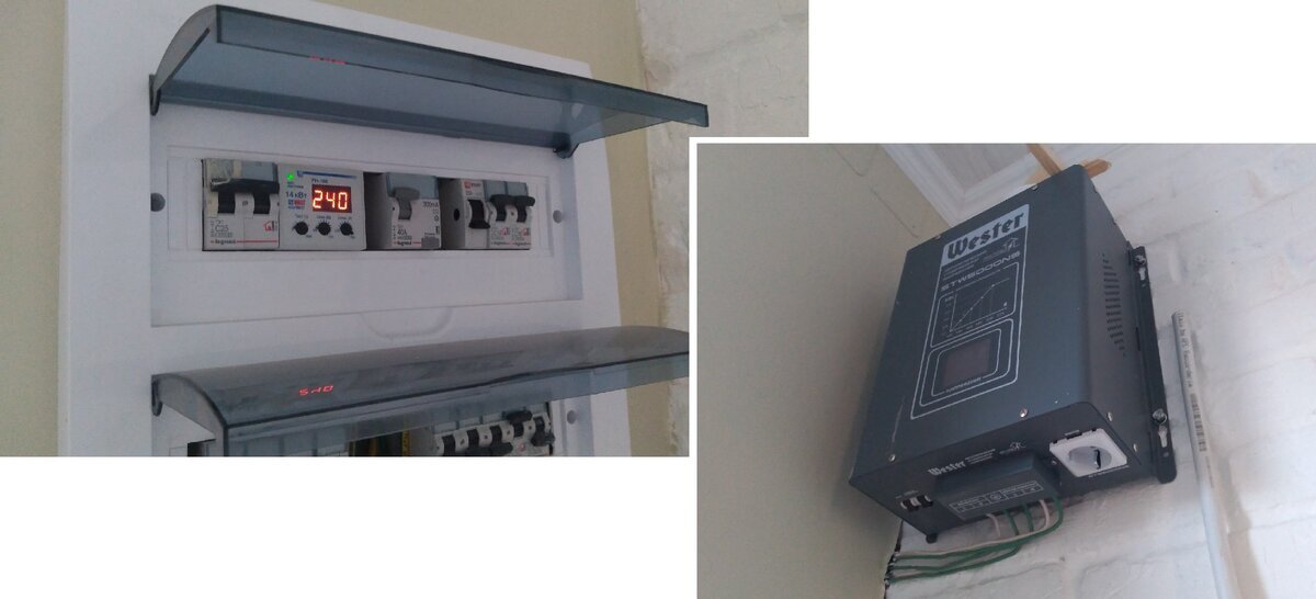 Огромное достоинство этого устройства в том, что реле контроля напряжения имеет невероятно быструю реакцию на изменение напряжения, оно для этого и создано! РКН устанавливается сразу ПОСЛЕ входного автомата и ДО всех устройств (фото ниже).