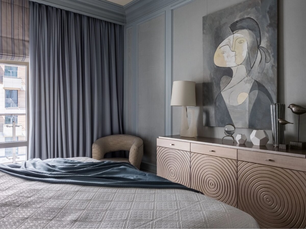 Что не так с картиной в этом интерьере? Интерьер опубликован в культовом интерьерном журнале AD (Architectural Digest). Подпись к фотографии - "Фрагмент спальни. Кресло по дизайну Келли Вирстлер. Комод сделан на заказ по чертежам дизайнера. Картина художника Валентина Тютерева". Не так здесь примерно.... всё. 1. Если вы не знаток искусства, но умеете пользоваться поиском по картинке в Яндексе или Гугле, то вы моментально узнаете, что это изображение - точь-в-точь картина Пабло Пикассо "Мария-Тереза, анфас и в профиль": Однако все тот же интернет подсказывает нам, что оригинал картины находится в частной коллекции в Нью-Йорке. Картина публично выставлялась на выставке "Пикассо Черное и Белое" в музее Гуггенхайма, Нью-Йорк, 2012-2013. То есть, картина явно находится не в Москве. Значит, на фото в интерьере, как и следовало ожидать - не оригинал и не Пикассо. Правильнее в подписи к фотографии указать "Копия с картины Пабло Пикассо "Мария-Тереза". Да, друзья, это всего лишь унылая ре