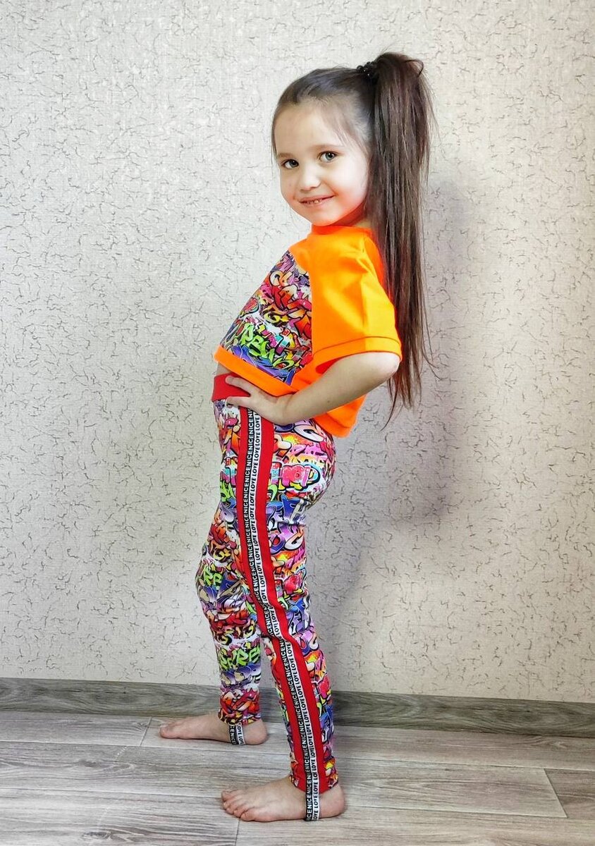 Предлагаем вам сшить классный и модный комплект для девчонок - лосины с лампасами и укороченную футболку. Для пошива выбирайте кулирку, с принтом или однотонную, а можно комбинировать и то, и другое. По бокам на лампасы можно пришить декоративную тесьму. Получится очень ярко и стильно, юные модницы будут в восторге от такого наряда. Укорочённая футболка Аделаида среднего объёма. Втачной короткий рукав обработан по низу окантовкой . Перед изделия состоит из кокетки и нижней детали. Размерный ряд 98 - 140 см. Лосины Милан с лампасами по бокам. Базовая модель. Такие лосины можно сшить как летний вариант из кулирки, так и из бифлекса — для занятий спортом. Размерный ряд 98 - 140 см. Сшить такой комплект совсем не сложно. Вместе с выкройками вы получите подробные описания пошива с фотографиями каждого этапа пошива. Выбирайте понравившиеся ткани, подбирайте яркие сочетания цветов и сшейте своими руками такой комплект для дочки, внучки или кому-то в подарок. Выкройки футболки Аделаида и лос