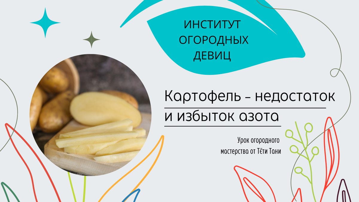 Здравствуйте, уважаемые читатели! Сегодня мы с вами продолжаем развивать тему картофеля. Итак, что же происходит с картофелем при нехватке азота и азотистых удобрений? Прежде всего, нам с вами необходимо помнить чем различаются азотные и азотистые удобрения. Азотные удобрения более тяжёлые, и прежде чем усвоиться корневой системой растения, они должны быть переработаны бактериями живущими в почве. Тогда как азотистые удобрения (например нашатырный спирт или аммиачная вода) без участия бактерий могут быть переработаны картофельными корнями. Итак, нехватка азота. Она достаточно легко читается даже по внешнему виду растения. Кусты картофеля низкорослые, листья на кустах мелкие, имеют светло-зелёный окрас, с течением времени желтеют, могут даже опадать. Прежде всего это связано с типом и составом почвы на которой растёт картофель. Бедные азотом это, как правило, песчаные и супесчаные почвы. Также к ним можно отнести и глинистые почвы, которые кроме недостатка азота ещё и имеют тяжёлую