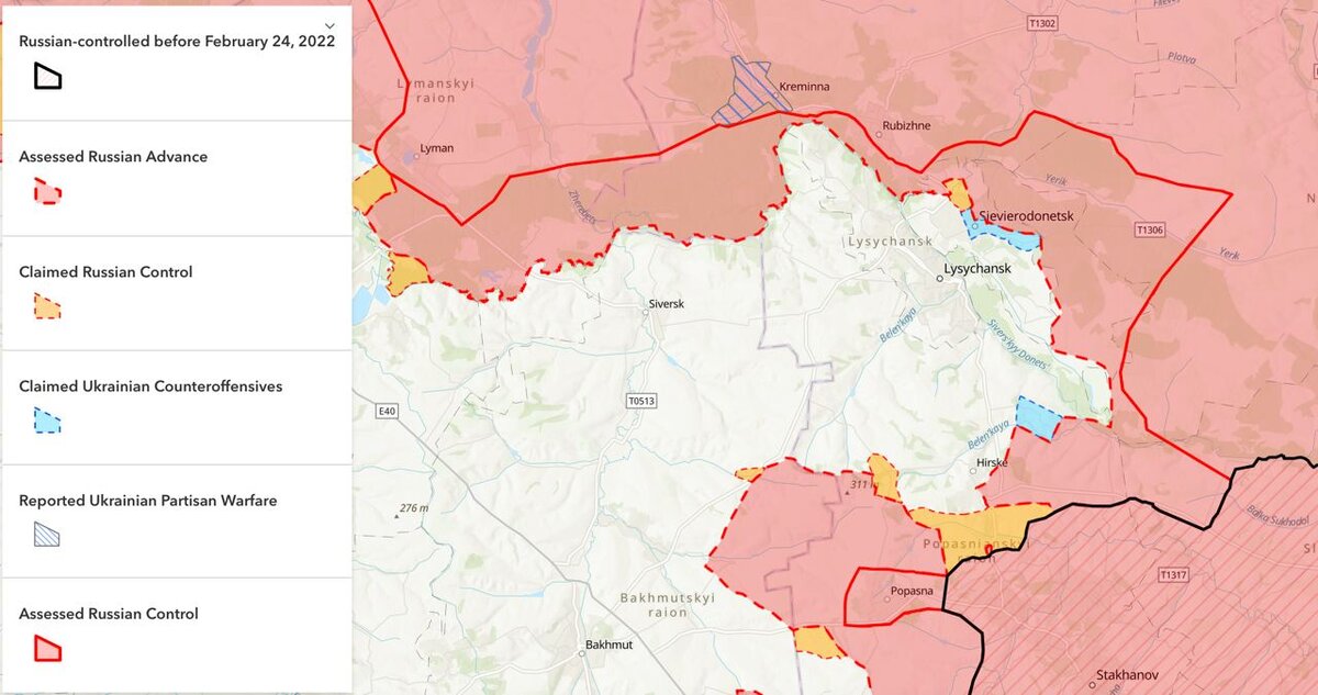 5 июня украинские силы продолжали проводить ограниченные и локальные, но успешные контратаки против российских позиций на всей территории Украины, в том числе отбили большие районы Северодонецка. Успешные контратаки Вооруженных сил Украины в Северодонецке указывают на снижение боевой силы россиян. (ISW) отмечает, что несмотря на то, что российские войска продолжают перекидывать технику и войска в район Северодонецк – Лисичанск, украинские войска провели успешное контрнаступление в Северодонецке за последние 48 часов и отбросили российские войска к восточным окраинам города и пунктов. Аналитики отмечают, что контратаки ВСУ в Луганской области, скорее всего, продолжат привлекать внимание российских сил в данном регионе, что в свою очередь создаст уязвимые места в защите России в Харьковской области и вдоль южной оси.