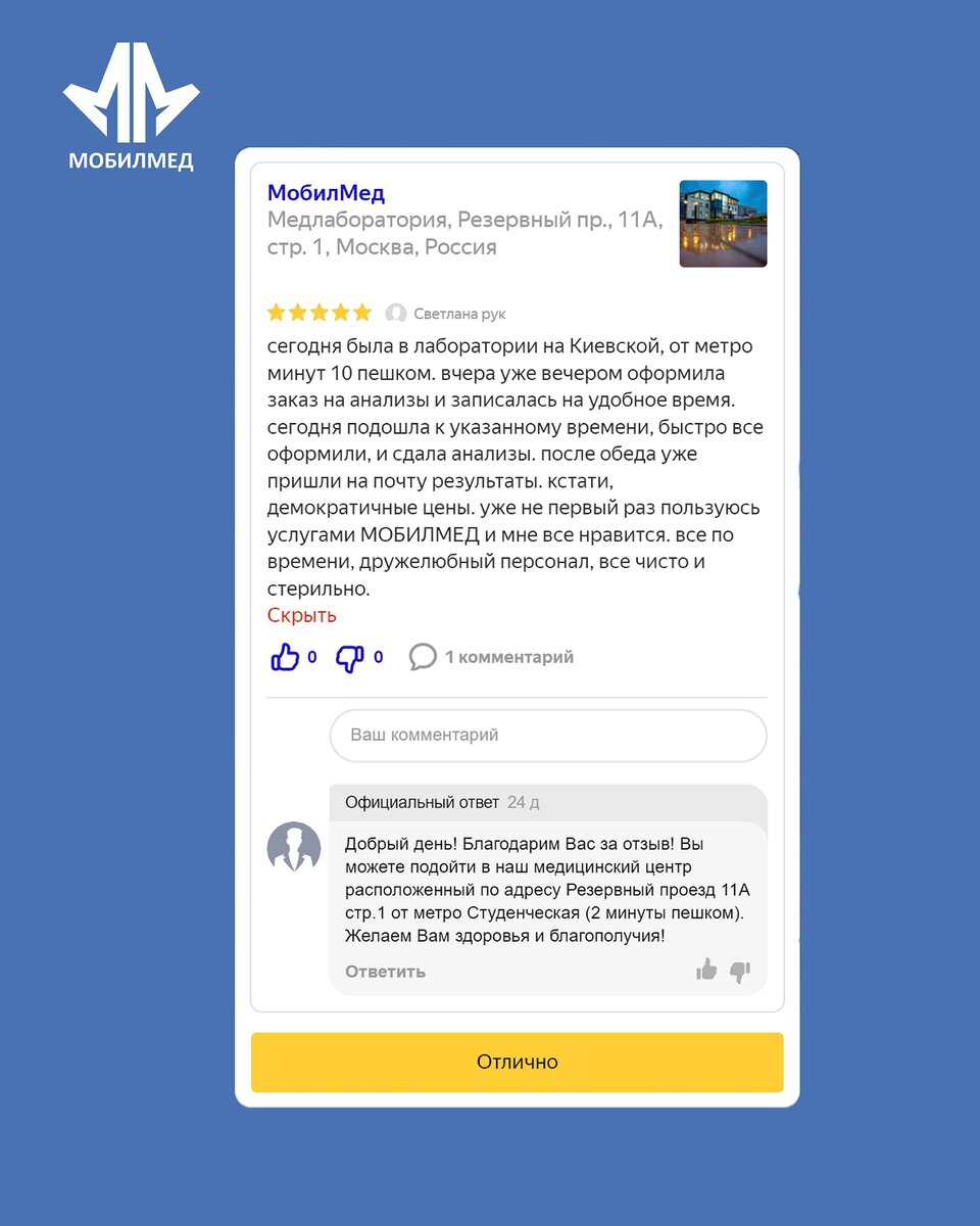 А еще, все комментарии, предложения и замечания. И благодарим за каждый отклик! Это помогает нам становиться лучше, чтобы наша дружба с вами длилась долгие годы, помогая вам получать квалифицированные услуги, а нам быть внимательными к тому, что для вас важно.