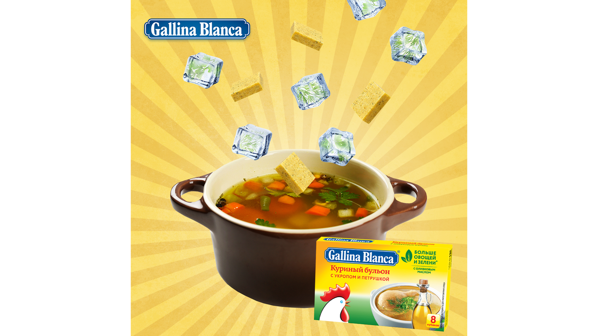 Зелень – это яркое украшение, неповторимый вкус и аромат для блюда 🌿 Ловите полезный лайфхак! Не выбрасывайте неиспользованные травы. А заморозьте их в формочках для льда, залив ячейки водой или оливковым маслом. Такие «льдинки» сделают блюдо гораздо вкуснее. А лучше возьмите уже готовые бульонные кубики Gallina Blanca. Продукт не содержит консерванты и ГМО, а еще имеет большой срок хранения – 24 месяца 😊