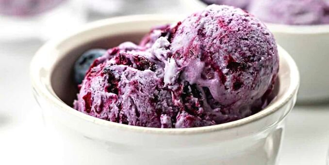Лето пока не радует тёплой погодой, так пусть порадует домашнее черничное мороженое без мороженицы