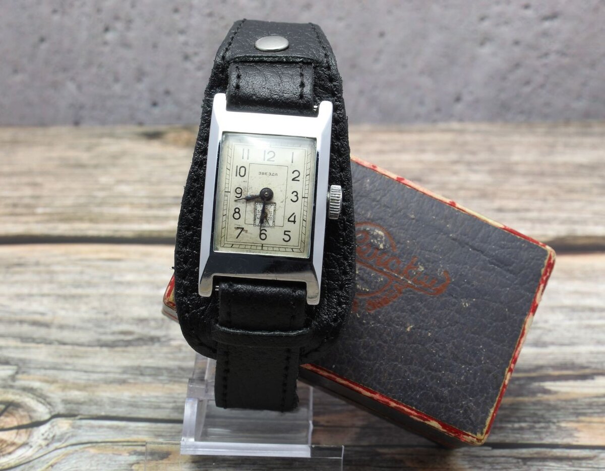 В качестве интересного примера я решил привести прямоугольные часы "Звезда" примерно ~1950-х годов выпуска. Но для начала, по уже сложившейся традиции, предлагаю ненадолго окунуться в часовую историю.