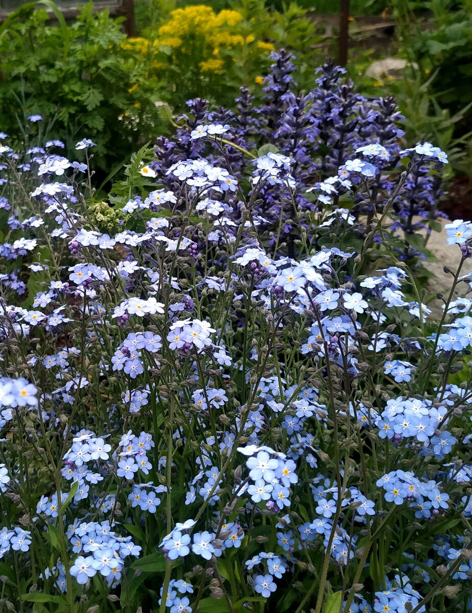 Да, речь пойдет об обычной луговой незабудке, которая украсит любую альпийскую горку! Незабудка не совсем многолетнее растение. Ее жизненный цикл составляет 2 года. Не смотря на это, она отлично восполняется самосевом и с моей горки она никуда не девается. А если незабудка выросла не там, то она совсем легко выдергивается, не неся ущерб соседям. Кустики незабудки невысокие и пышные. Цветение начинается с конца мая. На открытых солнечных местах она цветет обильно, превращаясь в голубые озера! Корневая система у незабудки поверхностная, поэтому вырастая рядом с каким нибудь другим растением, она абсолютно ему не повредит и не потеснит. Так как незабудка цветет голубыми соцветиями, рядом с ней гармонично и ярко будут смотреться гравилат, молочай кипарисоволистный, алиссум скальный, белые и розовые альпийцы. Какого то ухода незабудка не требует совсем. Растет у меня и в полутени, но цветение совсем не такое шапочное, как на горке. Для любителей альпийских горок этот цветок - находка! Воз