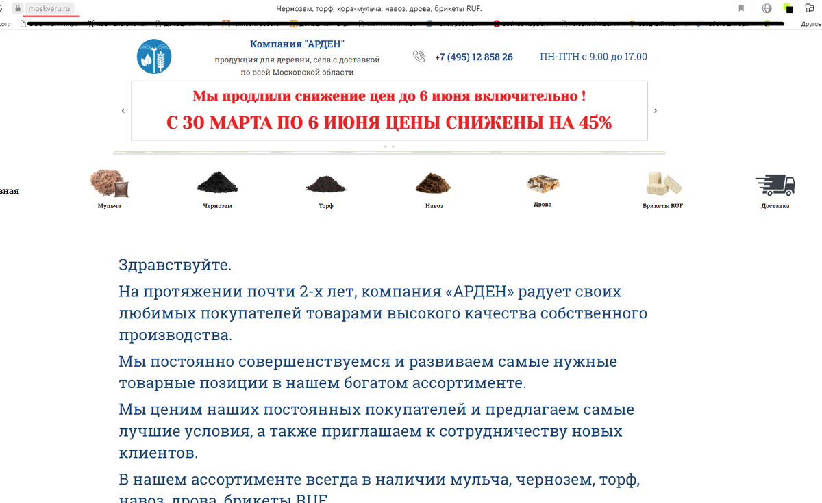 В этом году весна выдалась холодной, а запасы дров на исходе, стал звонить тем, у кого заказывал дрова в прошлом году, но оказалось, что дрова подорожали до 2500 руб./куб, так еще и нет их в наличии (названивал в течение первой половины мая). И тут на глаза попадается реклама доставки дров по всему подмосковью. Дозвониться не смог, оформил заказ через сайт и тут в принципе был первый "звонок"-сомнение, все общение происходит через e-mail, при этом вежливо с извинениями за долгие ответы, прислали даже договор, который я сам заполнил и это был второй "звонок"-сомнение, но заполнил, отправил, и да я лапухнулся, оплатил доставку 1200 рэ. ООО "Арден" существует в лице одного человека, вроде как все хорошо Если поискать отзывы, то наверняка вы найдете их только на этом сайте. Странный сайт, доступна только главная и страница с отзывами, видимо сделано именно для этой конторы. Должны были доставить дрова в воскресенье 29.05.22, но не доставили, вежливо сообщив об этом, опять же по e-mail,