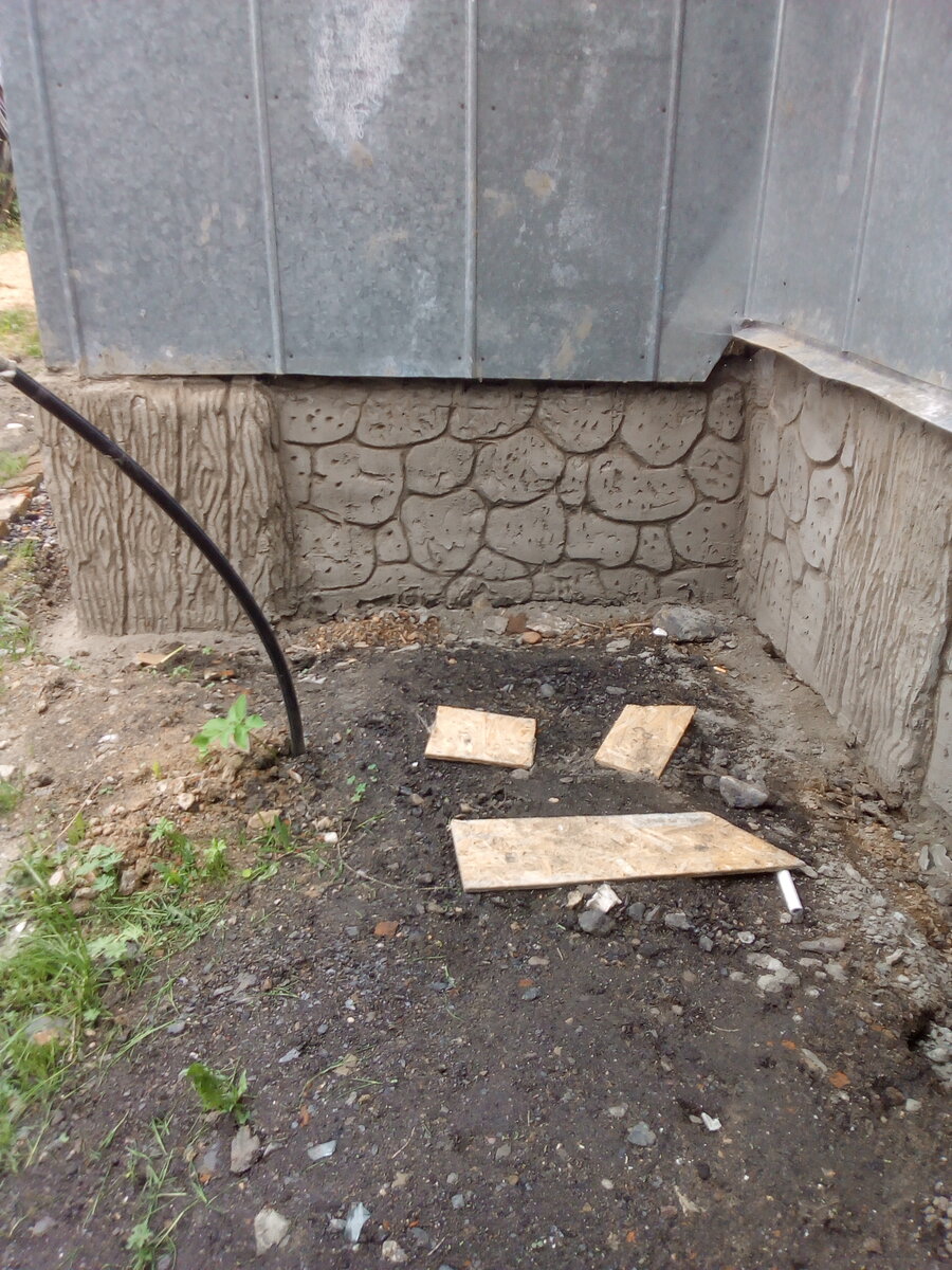 Это цоколь нашего дома со стороны соседей. Это делала я. Это часть цоколя забора . Это еще черновая отделка. Интересно? Публиковать продолжение? Видео не сняла - руки были заняты, да и не нарядная была:)