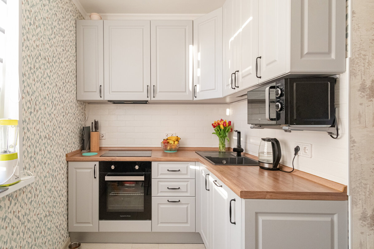 В нем главное — простые формы, много света и минимум деталей. Цвета, преобладающие в интерьере: белый, серый и черный. Мебель с глянцевой или матовой поверхностью и ровными линиями делает минимализм универсальным и современным. Если у вас маленькая кухня, но вы хотите уюта и при этом иметь под рукой максимум техники — выберите именно этот стиль.
