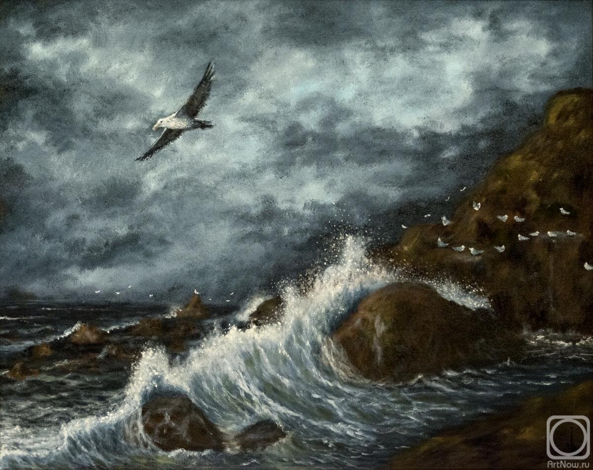 Над седой равниной моря ветер тучи собирает. Между тучами и морем гордо реет Буревестник, черной молнии подобный. То крылом волны касаясь, то стрелой взмывая к тучам, он кричит, и — тучи слышат радость в смелом крике птицы. В этом крике — жажда бури! Силу гнева, пламя страсти и уверенность в победе слышат тучи в этом крике. Чайки стонут перед бурей,- стонут, мечутся над морем и на дно его готовы спрятать ужас свой пред бурей. И гагары тоже стонут,- им, гагарам, недоступно наслажденье битвой жизни: гром ударов их пугает. Глупый пингвин робко прячет тело жирное в утесах… Только гордый Буревестник реет смело и свободно над седым от пены морем! Все мрачней и ниже тучи опускаются над морем, и поют, и рвутся волны к высоте навстречу грому. Гром грохочет. В пене гнева стонут волны, с ветром споря. Вот охватывает ветер стаи волн объятьем крепким и бросает их с размаху в дикой злобе на утесы, разбивая в пыль и брызги изумрудные громады. Буревестник с криком реет, черной молнии подобный, как ст