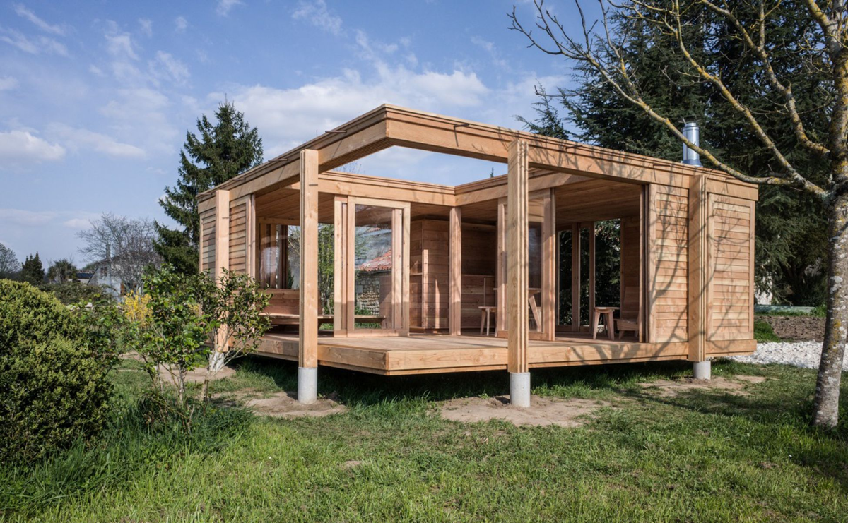 Современная японская архитектура строится на принципах минимализма и гармонии интерьера с окружающей средой. Архитектурная студия 2m26 разработала проект небольшого дома для семейной пары, проживающей на юго-западе Франции. С первого взгляда на постройку можно догадаться, что ее авторами являются японские специалисты. Коттедж площадью в 35 м² под названием La Petite Maison построен на участке рядом с главным домом заказчиков и используется, как правило, для размещения гостей. Конструктив коттеджа полностью построен из хвойного дерева, наиболее часто встречающегося в данной местности, — пихты Дугласа. Дом было собран совместными усилиями разработчиков и заказчиков и установлен на железобетонные сваи. Для крепления деревянных панелей к несущим элементам используются винты. При необходимости постройку можно легко разобрать и собрать в другом месте. Или же пустить все использованные материалы на вторичную переработку. Пространство дома разделено на четыре равные по площади зоны — условными