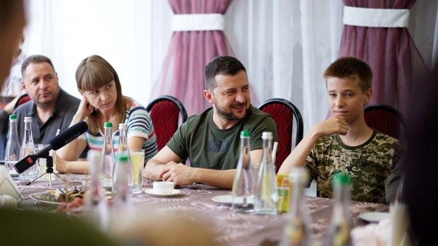 Президент Незалежной продолжает игнорировать патовое положение своего народа. Для него кризиса из-за разгула бандитизма словно не существует. Фото: UKRAINIAN PRESIDENTIAL PRESS SER via REUTERS; 5-tv.ru Визит Владимира Зеленского в Запорожье вызвал немало вопросов у жителей Украины. Для встречи с беженцами из Мариуполя организаторы накрыли богатый стол: фрукты, выпечка, газировка и прочие яства. Но к еде и напиткам, судя по кадрам, которые сделала пресс-служба украинского президента, никто не притронулся, как будто им запретили это делать. И это вызвало бурю негодования, особенно, учитывая ситуацию с продовольствием. К примеру, в Николаеве за гуманитарной помощью выстраиваются километровые очереди. Норма — две банки консервированных сосисок в одни руки и больше ничего. И то этот набор достается не всем. Не лучше ситуация и с хлебом. Во многие населенные пункты его просто не завозят, что очень странно — в том же Николаеве в элеваторах хранятся тонны пшеницы. Но в пекарни она не поступает