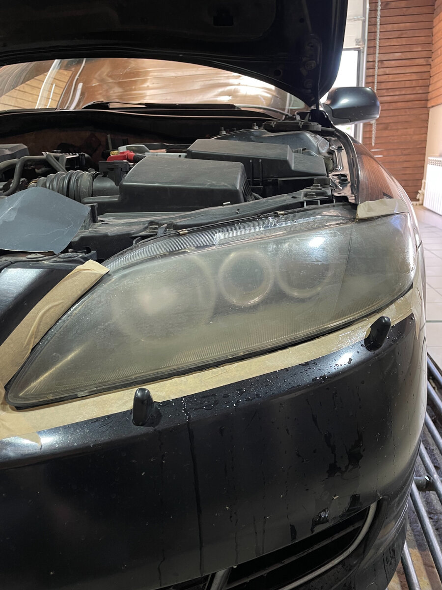 Приехала к нам в центр мазда вот с такими уставшими от тяжелой российской жизни фарами 😓 Новые фары стоят как крыло от самолёта, поэтому было принято решение восстанавливать! Первым делом сняли фары с автомобиля и обнаружили что помутнения фар не единственная проблема На правой фаре присутствует трещина которой уже не один год, именно поэтому фары внутри покрылись налетом. Есть проблема, найдётся и решение! Разобрали фары и вот такой ужас обнаружили внутри фары… Первым делом отмоем всю внутрянку и почистим линзы Следующий шаг, вышкуриваем фару со всех сторон, снимая заводское покрытие На этапе подготовки нужно уделить максимальное внимание на «риску» которую оставляет наждачная бумага, от этого зависит конечный результат! Закончили шлифовку и теперь можно приступить к химическому восстановлению с помощью «чудо чайника», тут главное правильно подобрать химию, в противном случае, все восстановление будет зря, потому что неправильная химия может выпасть химическим осадком внутри