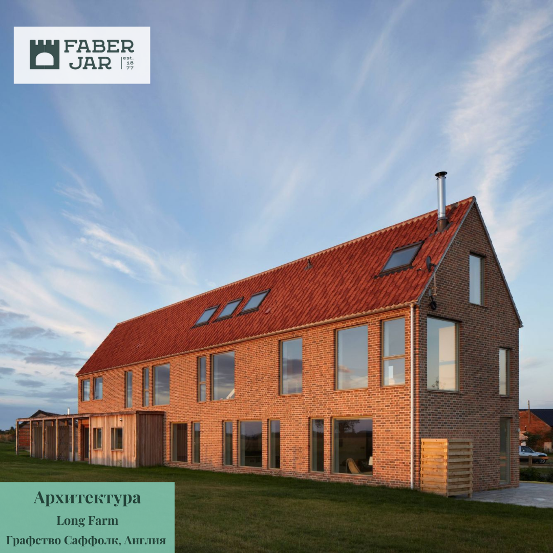 Длинная кирпичная ферма с остроконечным профилем и угловым дымоходом спроектирована британским архитектором Люси Марстон и расположена в графстве Саффолк на востоке Англии. 🏠Резиденция представляет собой трехэтажный семейный дом с использованными местными материалами, которые включают: красный кирпич, терракотовую черепицу, известковый раствор и деревянные детали. "Мы хотели построить здание, которое принадлежало бы этому участку", - говорит Люси Марстон. Мансардные окна выстроены вдоль обеих сторон крыши, а большие окна охватывают все четыре высоты, позволяя солнечному свету проникать в дом в разное время суток.☀️ Аналогичная палитра материалов была применена и в интерьере. ✏️Martson объясняет: "Побеленная кирпичная кладка, окрашенные деревянные накладки и открытые потолочные балки были использованы для придания честной глубины, текстуры и характера современному интерьеру". Клиент работает писателем и просил тихие места для работы, а также свободные пространства для отдыха с семье