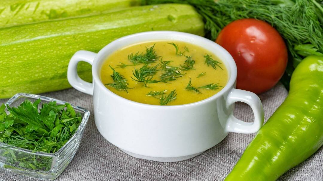 Идеальный рецепт приготовления летнего супа-пюре из кабачков с морковью и луком на мясном бульоне без добавления картошки, который приятно удивит своими замечательными вкусовыми качествами! Ингредиенты: Кабачки, Репчатый лук, Морковь, Болгарский перец, Мясной бульон, Растительное масло , Острый перец чили , Хмели-сунели , Смесь перцев , Сушеный чеснок , Соль Способ приготовления: Для приготовления овощного супа выливаем в кастрюлю 3 столовые ложки растительного масла, затем выкладываем в нее 1 головку мелко нарезанного репчатого лука. Выкладываем в кастрюлю с луком натертую на крупной терке морковь и ставим кастрюлю на плиту, после чего овощи перемешиваем и обжариваем их на среднем огне плиты до прозрачности лука. Нарезаем кусочками 1 килограмм кабачков и выкладываем их в общую кастрюлю, затем овощи перемешиваем и прогреваем кабачки 5-7 минут на среднем огне плиты. Нарезаем соломкой 1 болгарский перец и по вкусу острый перец чили, затем выкладываем нарезанный перец в общую кастрюлю и п