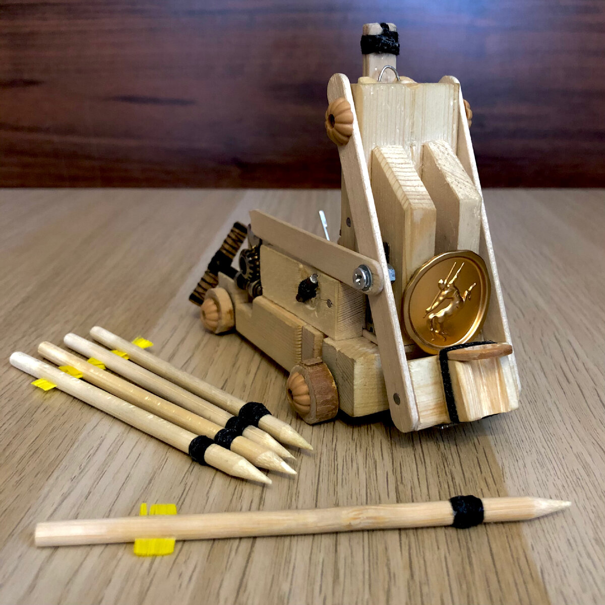 В истории по большей части применялись спрингалды тенсионного принципа действия (использующие силу упругого натяжения досок) 🪵 Но я решил усовершенствовать орудие и увеличить силу натяжения, собрав торсионное плечо💪🏽Ни разу не находил информацию о спрингалдах, имеющих такой же облик и похожую конструкцию, так что можно считать данное орудие импровизированным💡