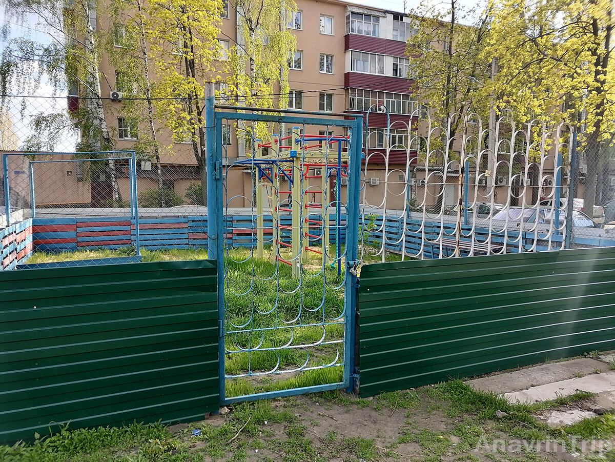 Удивились - слабо сказано. Недавно на глаза попалась вот такая площадка. Вполне себе обычная, похожие в каждом дворе стоят. Вот только эта огорожена добротным забором с сеткой-рабицей и закрыта на амбарный замок! Сразу вспомнилось, как несколько лет назад «дворово-лавочковые» бабушки требовали, чтобы мы своим детям, играющим в футбол во дворе, тоже поставили забор из сетки-рабицы. Бабушек не устраивало, что мяч с площадки иногда улетает. Нет, не за стекла в окнах переживали, а за цветы в клумбе. Мол, мяч попадет в них и помнет. Поэтому детей с их футболом надо от «красивой» части двора отгородить. Бабушкам в ответ было предложено огородить сеткой-рабицей клумбу. И дешевле (сетки меньше уйдет), и клумбу от всех напастей, включая бегающих где попало дворовых котов, спасти можно. Почему-то не согласились ;))) Любопытно, а какая история у этой площадки? Судя по разросшейся траве и немного потрепанному виду, ею в этом году еще не пользовались. Да и размер ее рассчитан небольшое число спокой