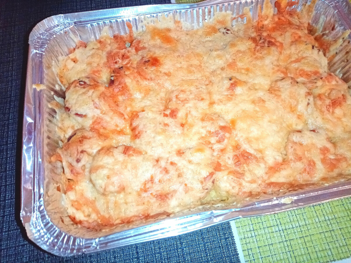 8. Присыпать верх запеканки тертым сыром и вернуть в духовку, чтобы он расплавился и появилась красивая корочка.