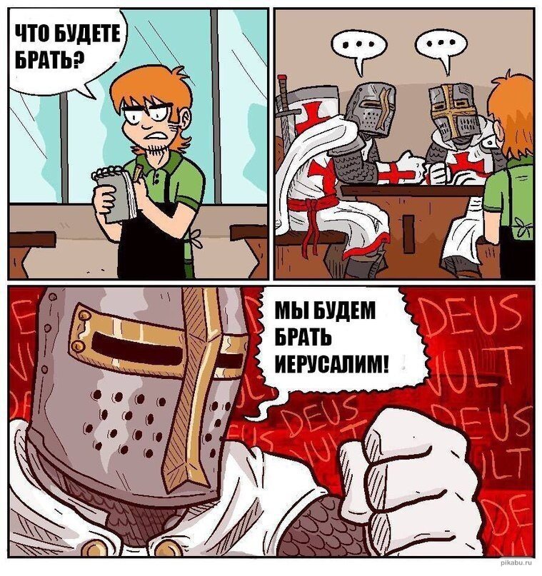 Привет, дорогой друг! Поскольку мы знаем о прошлом частично из учебников истории, а частично из сериалов и книг, то для нас давние времена могут быть овеяны ореолом романтики. Например, когда мы говорим про #средневековье , часто первыми приходят на ум прекрасные дамы и их #рыцари . Однако, не все было так романтично. Сегодня я подготовил #комиксы про жизнь в Средневековье, которые подходят к историческим событиям с юмором. Так сказать, разбавляют мрачное Средневековье своими забавными сюжетами. Немного неожиданное сочетание современного места отдыха и исторических героев в одном комиксе от автора Micose bubonica. Можно сказать, что у художника получилось очень удачно пофантазировать на тему, что бы было, если бы крестоносцы пришли в бар. Автор balisangre считает, что такое окончание истории как «жили они долго и счастливо» не совсем правдоподобно. Все же в те времена медицина была не самого высокого уровня, а это значит, что долгожителей было не так уж много. Возможно именно из-за сла