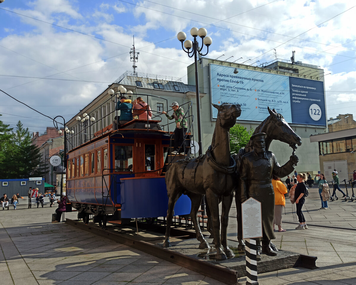 Немногие туристы Санкт-Петербурга замечали скромно стоящий у станции метро Василеостровская памятник конке. А теперь это обновленная достопримечательность, где даже можно выпить кофе на империале! А что это вообще такое, империал и, собственно, конка? Конка - это трамвай на конной тяге в две лошадиные силы. В 1860 году в городе появился маршрут грузовой конки, а в 1863 - пассажирский. Скорость конки была небольшой, максимум 8 км/ч (при скорости пешехода около 4 км/ч). Такая нерасторопность породила в народе шутку: «Конка, конка, догони цыпленка». Поначалу конки были одноэтажные, но потом был добавлен второй этаж, который назывался империал. Проезд на империале был дешев и стоил 3 копейки, так как у второго этажа отсутствовала крыша. Считалось, что места на империале для пассажиров второго класса, которые могли познать все прелести петербургской погоды) А вот пассажиры первого класса за комфортный проезд внутри салона раскошеливались на 5 копеек. Для женщин любых сословий проезд на