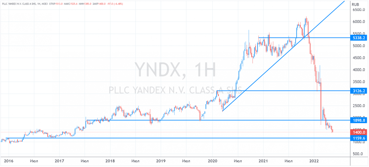 В пятницу, в рамках 6-ого антироссийского пакета санкций, в «чёрный» список включили основателя Яндекса Аркадия Воложа, как говорится, одного из ведущих бизнесменов страны, направление которого обеспечивает существенный источник дохода правительству России. В результате чего, Волож покинул все руководящие посты в Группе компаний Яндекса. Такое решение основателя компании ожидаемо. Это необходимо для снижения воздействия персональных санкций на компанию. Хотим отметить, что Аркадий Волож через семейный траст владеет 45,3% голосующей и 8,6% экономической доли Yandex N.V. Таким образом, он не является контролирующим акционером Яндекса. На данную новость акции Яндекса отреагировали падением на 15%, но затем, часть потерь отыграли в пятницу. В понедельник снижение котировок продолжилось, падение составляет более 6%. Тем не менее, на Яндекс и его дочерние компании западные санкции не были введены. Поэтому данные санкции никак не влияют на дельность компании. Сегодня стало известно, что Аркад
