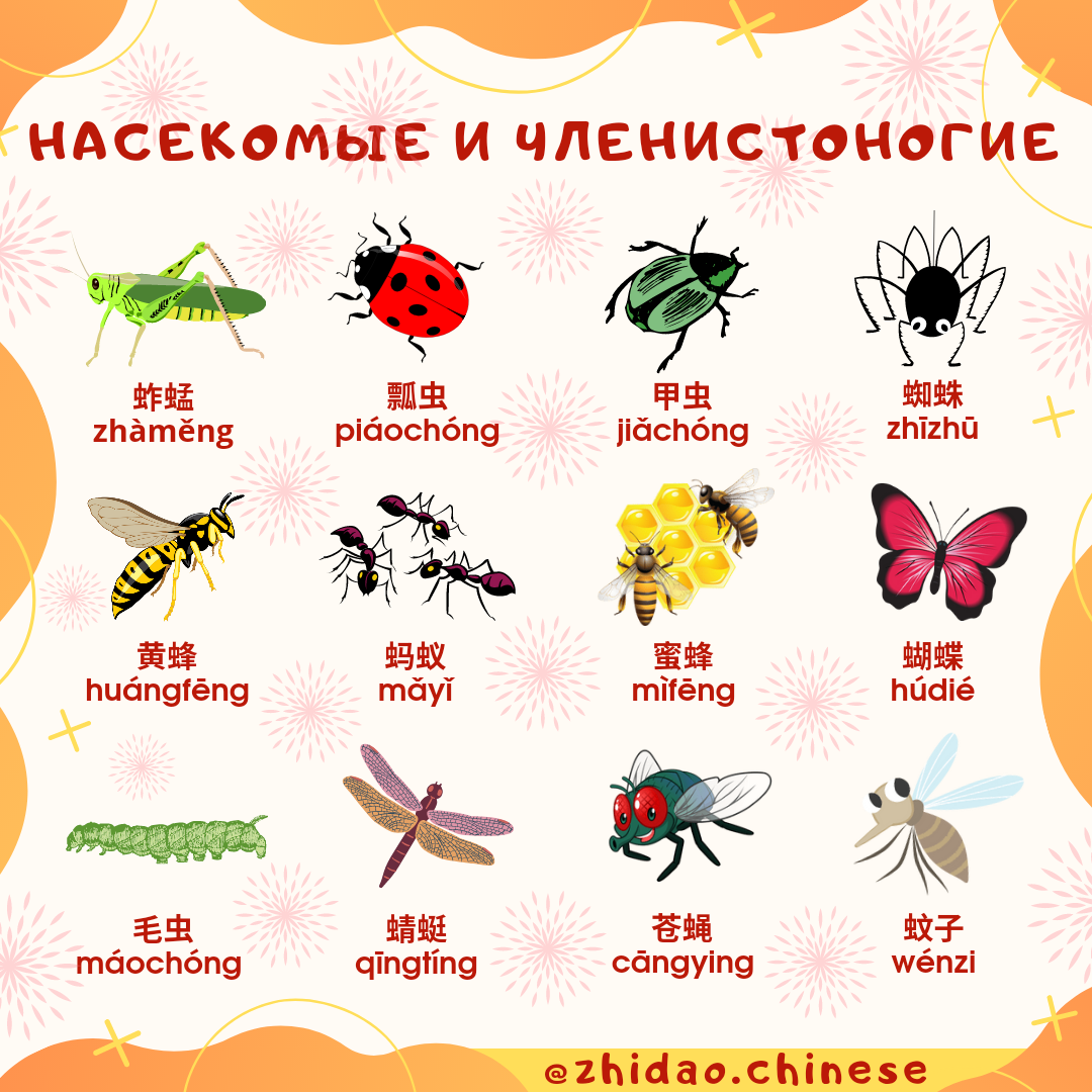 #zhidao_шпаргалки 📝 Сегодня мы подготовили для вас шпаргалку на тему "Насекомые и членистоногие" (昆虫与节肢动物 kūnchóng yǔ jiézhī dòngwù)! 🐞 🔸昆虫 kūnchóng насекомое 🔸节肢动物 jiézhī dòngwù членистоногие 🔸蚱蜢 zhàměng кузнечик 🔸瓢虫 piáochóng божья коровка 🔸甲虫 jiǎchóng жук 🔸蜘蛛 zhīzhū паук 🔸黄蜂 huángfēng оса 🔸蚂蚁 mǎyǐ муравей 🔸蜜蜂 mìfēng пчела 🔸蝴蝶 húdié бабочка 🔸毛虫 máochóng гусеница 🔸蜻蜓 qīngtíng стрекоза 🔸苍蝇 cāngying муха 🔸蚊子 wénzi комар 📝 Ссылка на карточки Quizlet для изучения новых слов: https://quizlet.com/_bo6lce?x=1qqt&i=2r5snr ❗В Quizlet вы можете послушать произношение всех слов! Для этого в различных режимах изучения или при просмотре списка слов нажмите на значок микрофона 🔊 📚 Хотите, чтобы Вы или Ваш ребенок заговорили на китайском? Напишите нам для записи на групповые / индивидуальные занятия! 🎓 #china #chinese #школакитайского #китайский #москва #язык #китайскиймосква #учукитайский