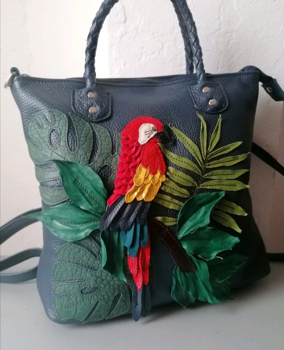 Сочная зелень тропических растений, яркие огромные цветы, которые, кажется, вот-вот начнут благоухать, поднимут настроение и подарят ощущение отпуска, даже если вы еще находитесь на рабочем месте в офисе или идете по улицам города с жарко дышащим под ногами асфальтом. Я очень люблю использовать тропическую тему в своих сумочках. И в этой теме хочу показать некоторые из моих работ. Сумки с попугаями Сумочки с тропические и цветами Орхидеи Спасибо Вам за внимание. Если понравились мои работы поддержите лайком. Всем желаю яркого, тёплого, потрясающего лета.