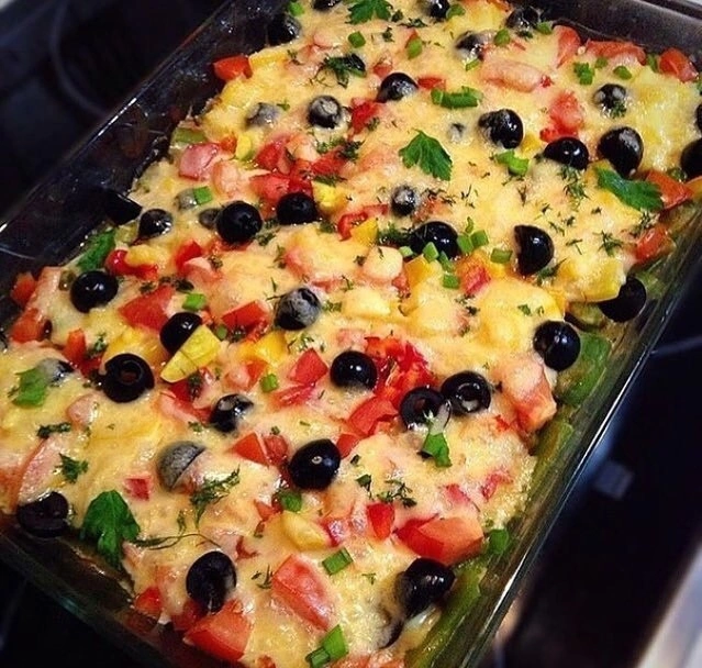 #пп рецепты #легкие рецепты #готовим вкусно дома #подписывайтесь на канал Ингредиенты: - Филе индейки - 800 г. - Лук - 2 шт. - Сыр (низкой жирности) - 200 г . - Фасоль стручковая - 400 г. - Помидор - 2 шт. - Перец сладкий - 2 шт. (1 красный, 1 желтый) - Оливки - Яйцо - 2 шт. - Соль, специи, зелень Приготовление: Филе индейки мелко порезать или измельчить в блендере . 2. Добавить лук, яйцо, соль, специи. 3. Выложить в форму. 4. Поставить в духовку на 20 - 25 минут при температуре 180 гр., пока мясо не станет упругим. 5. Достать нашу основу, добавить фасоль и еще на 5 минут в духовке. Далее выложить помидор, сладкий перец, оливки и посыпать сыром. 6. Возвращаем в духовку еще на 15 минут. Овощи в блюде дали сок, если хотите более плотное блюдо, можно добавлять отруби.